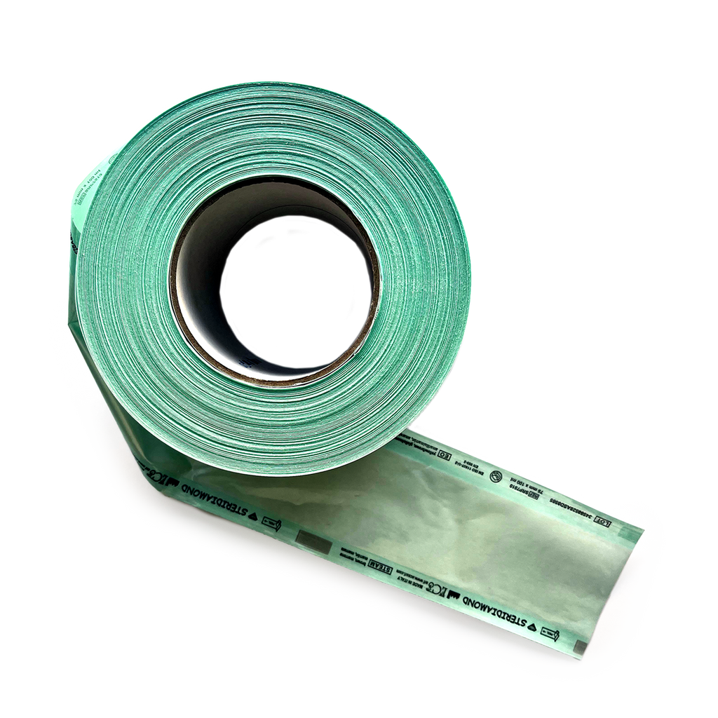 Vain autoklaaveille! Läpinäkyvä kalvo paperilla, höyrysterilointia varten.